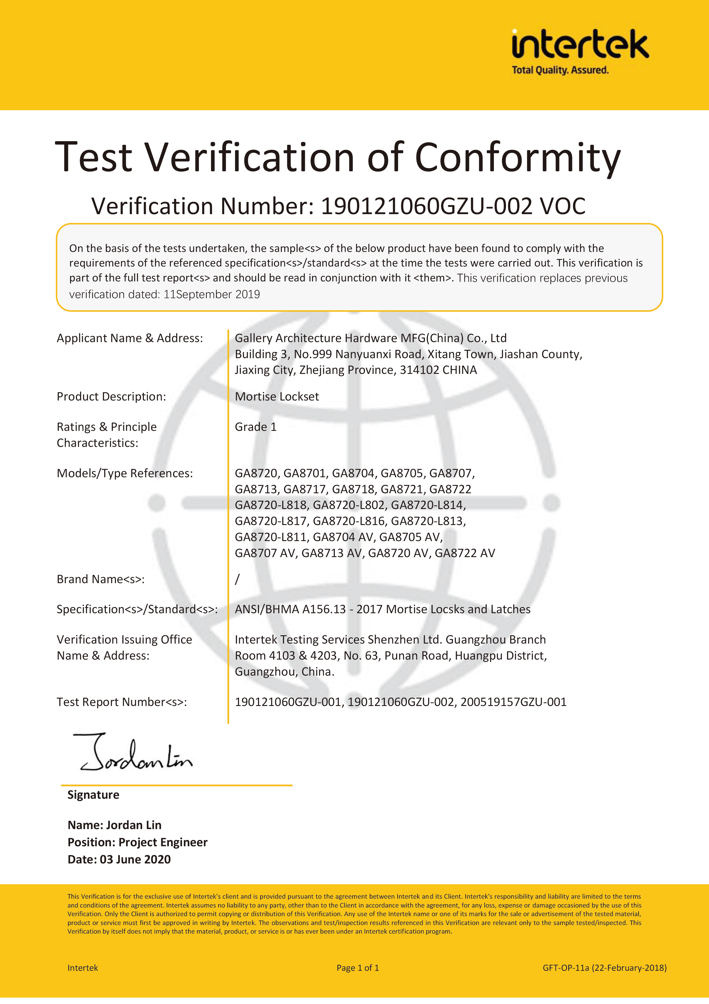 浙江堅(jiān)迪五金制造有限公司始建于 1995 年。自 2003 開始,公司致力于高標(biāo)準(zhǔn)商業(yè)鎖的研發(fā)工作,并于 2006 及 2007 年,8700 插芯鎖系列獲得美國(guó)國(guó)家標(biāo)準(zhǔn) ANSI A 156.13-2005 一級(jí)、ANSI A 156.2-2003 二級(jí)和美國(guó) UL 10C3 小時(shí)防火測(cè)試認(rèn)證。自 1998 年以來,公司不斷提升產(chǎn)品和客戶服務(wù)品質(zhì),并獲得了 ISO 9001 的認(rèn)證。